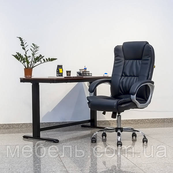 Шкіряне крісло Barsky Soft Leather Soft-01, чорне крісло з натуральної шкіри